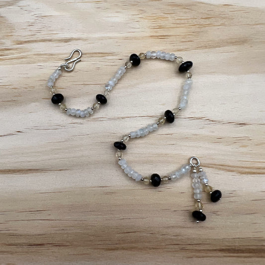 925 Silver Trendy Rainbow Moonstone, Yellow Citrine & Black Onyx Bead Single Anklet
