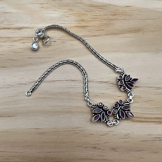 925 Silver Classic Pink Ruby Corundum & White Cubic Zirconia Cut Stone Single Anklet