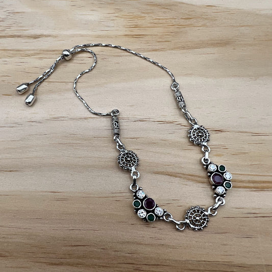 925 Silver Classic Multi Color Corundum & White Cubic Zirconia Cut Stone Single Anklet