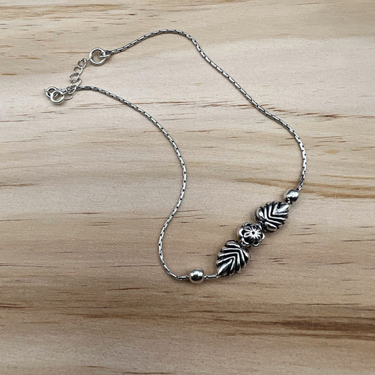 925 Silver Leaf Design Classic Plain Silver Single Anklet