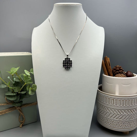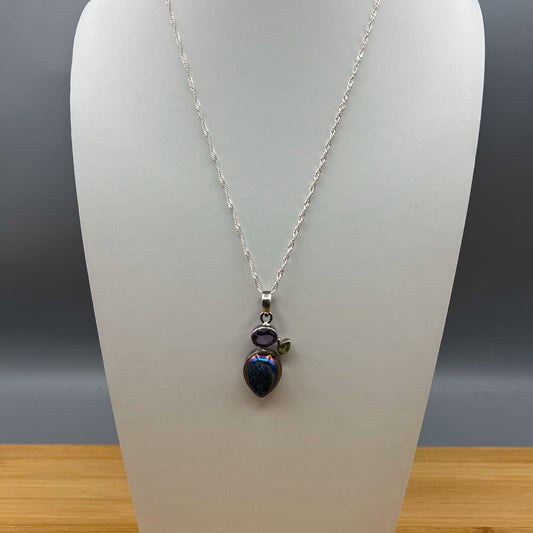 925 Silver Classic Multi Color Druzy, Green Peridot & Purple Amethyst Cut Stone Pendant