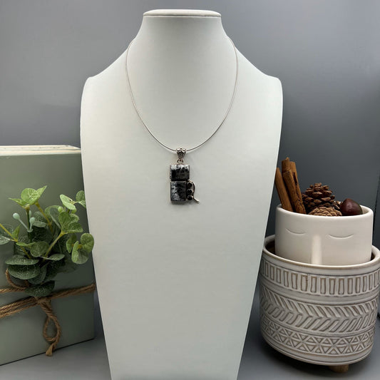 925 Silver Designer Trendy Grey Dendritic Agate & Red Garnet Mix Stone Pendant Set