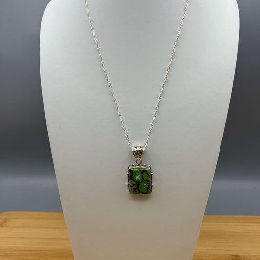 925 Silver Trendy Green Mohave Turquoise Chunky Cabochon Stone Pendant