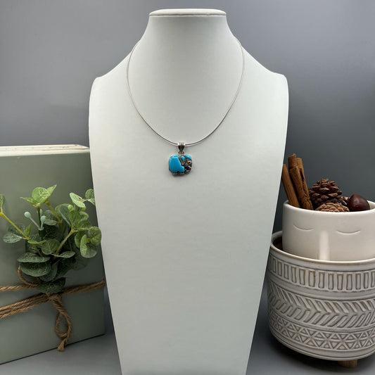 925 Silver Dainty Blue Turquoise Cabochon Stone Pendant Jewelry Set