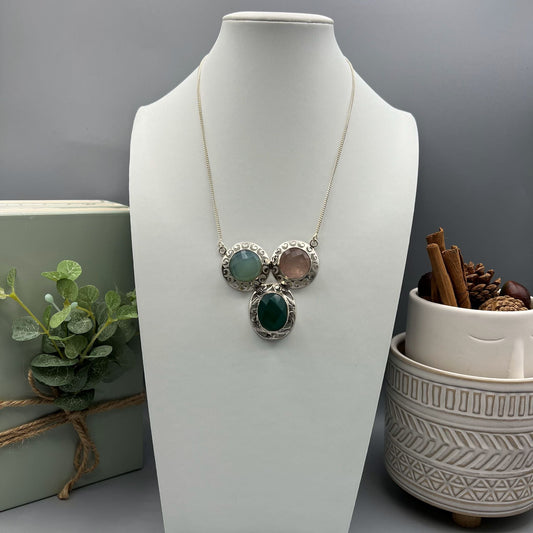 925 Silver Designer Trendy Black Onyx & Multi Color Multi Stone Chunky Cut Stone Necklace Set