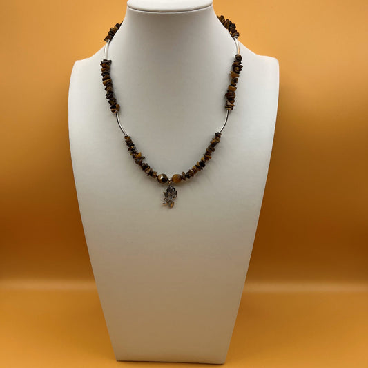 925 Silver Trendy Handcrafted Gold Brown Tiger Eye Chip Single Strand Bead Necklace Set