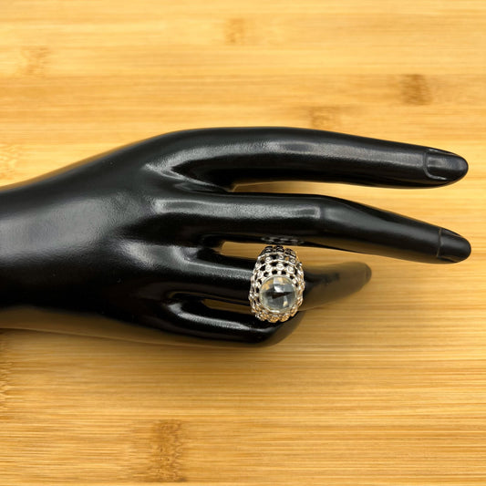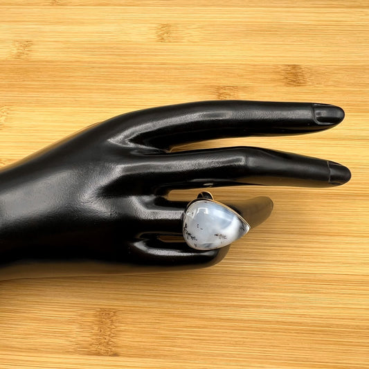 925 Silver Trendy Grey Dendritic Agate Chunky Cabochon Stone Ring - Size 7.5