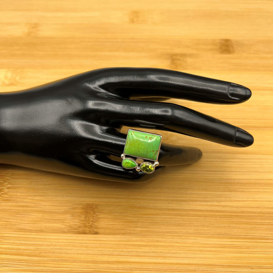 925 Silver Trendy Green Mohave Turquoise Chunky Mix Stone Ring - Size 6.5