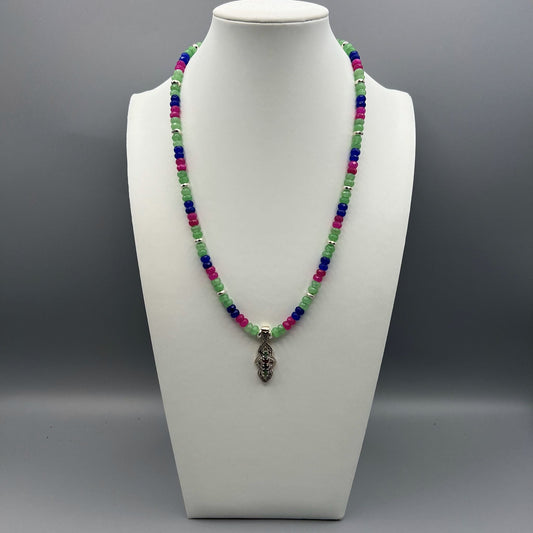 925 Silver Designer Dainty Handcrafted Multi Color Agate & Black Onyx Dual Strand Bead Necklace Set
