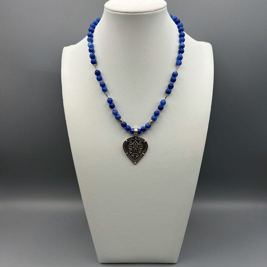 925 Silver Antique Look Classic Handcrafted Blue Kyanite Single Strand Bead Necklace Set
