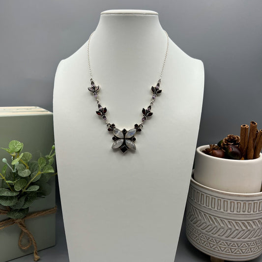 925 Silver Unique Designer Dainty Handcrafted Rainbow Moonstone & Multi Color Multi Strand Bead Necklace Set