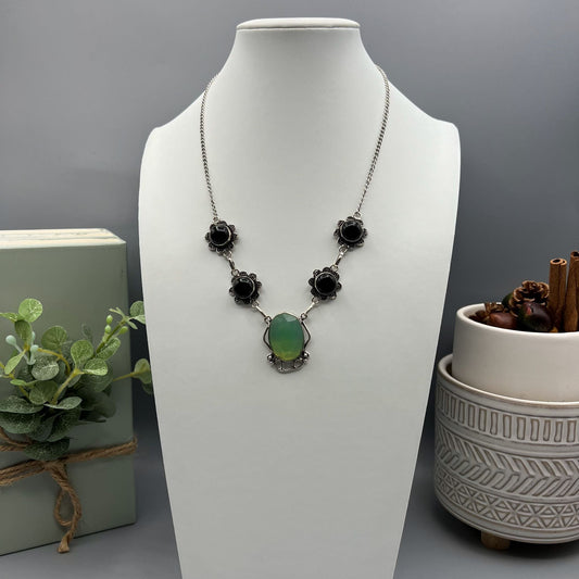 925 Silver Oxidized Classic Mint Green Milky Opal & Black Onyx Mix Stone Necklace Set