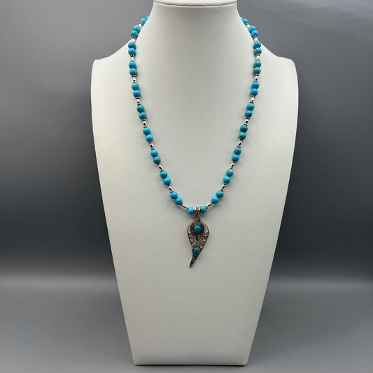 925 Silver Trendy Handcrafted Blue Turquoise Single Strand Bead Necklace Set