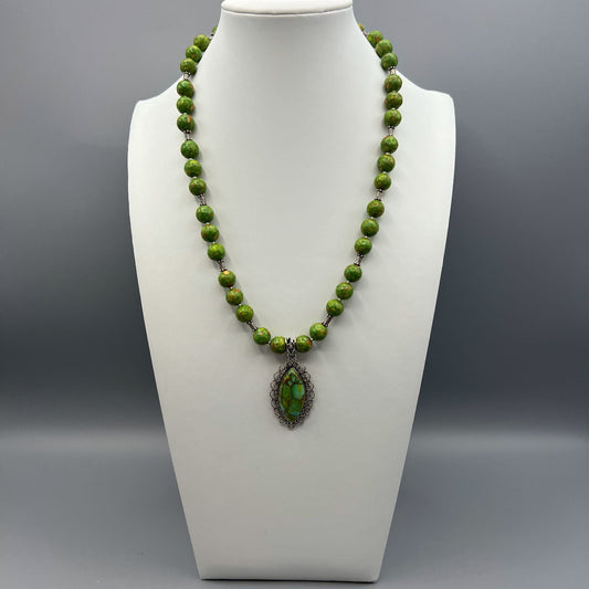 925 Silver Antique Look Handcrafted Green Turquoise Single Strand Bead Necklace Set