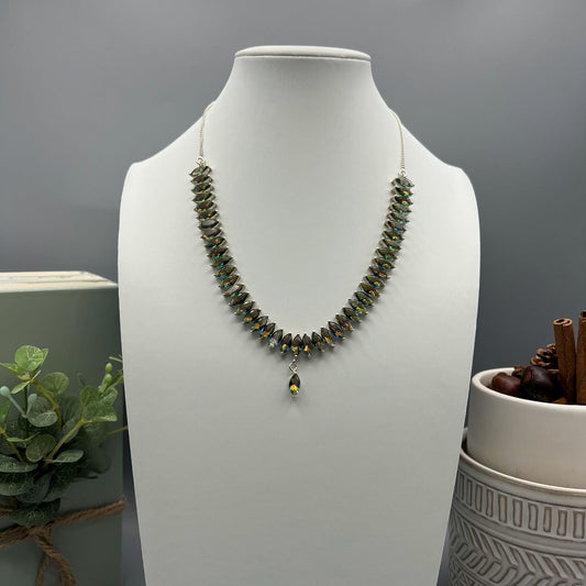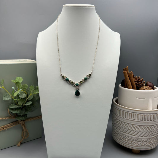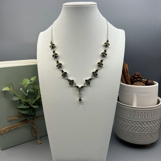 925 Silver Dainty Green Malachite & Green Peridot Mix Stone Necklace Set