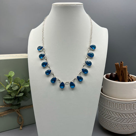 925 Silver Classic Blue Swiss Topaz Cut Stone Necklace Set