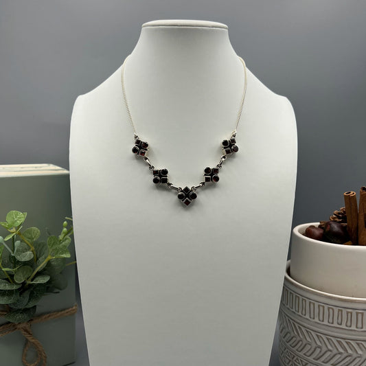 925 Silver Dainty Red Garnet Cut Stone Necklace Set
