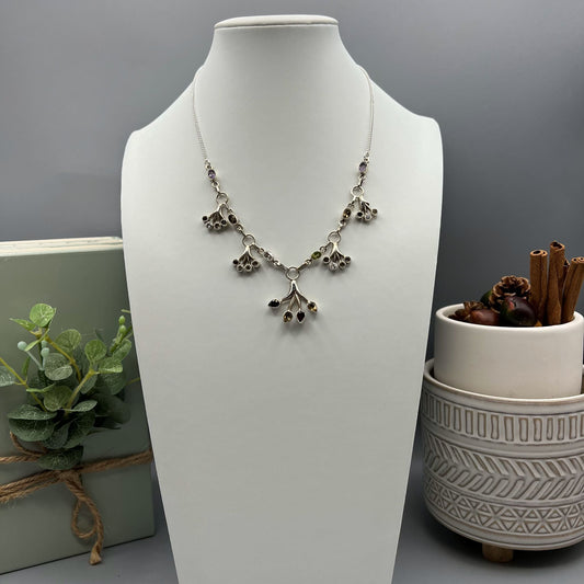 925 Silver Designer Trendy Multi Color Multi Stone Cut Stone Necklace Set