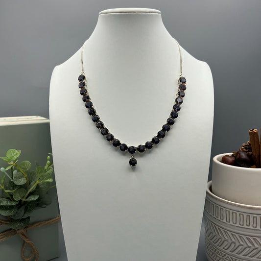 925 Silver Oxidized Elegant Plain Silver Necklace Set