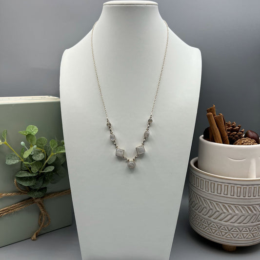 925 Silver Dainty Rainbow Moonstone Cabochon Stone Necklace Set