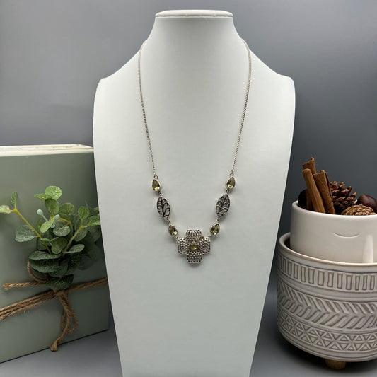 925 Silver Classic Light Green Peridot Cut Stone Necklace Set