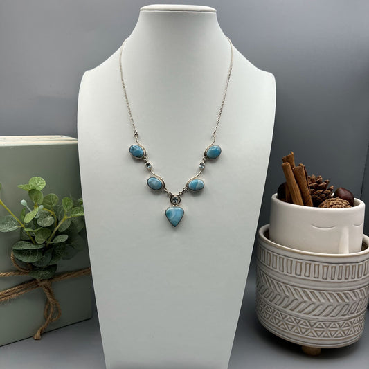 925 Silver Classic Blue Larimar & Blue Topaz Mix Stone Jewelry Set