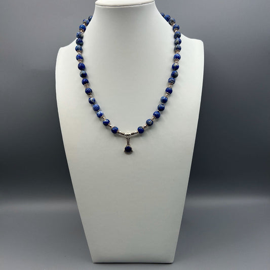 925 Silver Antique Look Handcrafted Classic Blue Lapis Lazuli Single Strand Bead Necklace Set