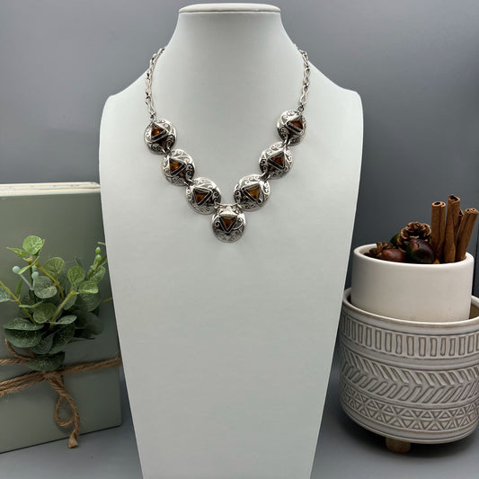 925 Silver Trendy Orange Amber Cabochon Chunky Stone Necklace Set