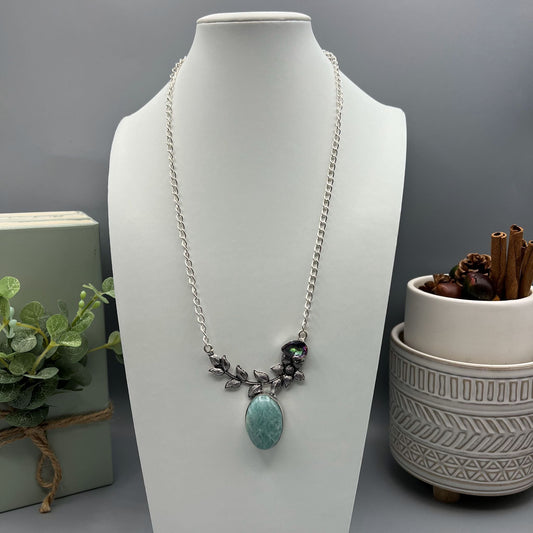 925 Silver Oxidized Trendy Blue Amazonite & Mystic Topaz Mix Stone Long Necklace Set