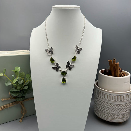 925 Silver Trendy Butterfly Motifs Green Peridot Cut Stone Necklace Set