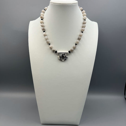 925 Silver Trendy Handcrafted White Matte Agate Single Strand Bead Necklace Set