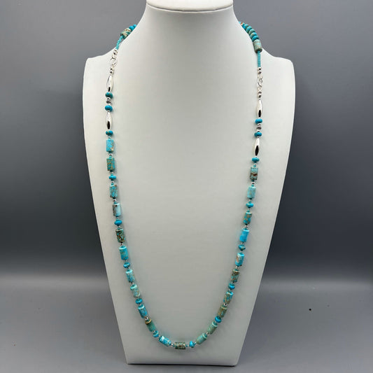 925 Silver Trendy Handcrafted Blue Turquoise Single Strand Bead Necklace Set