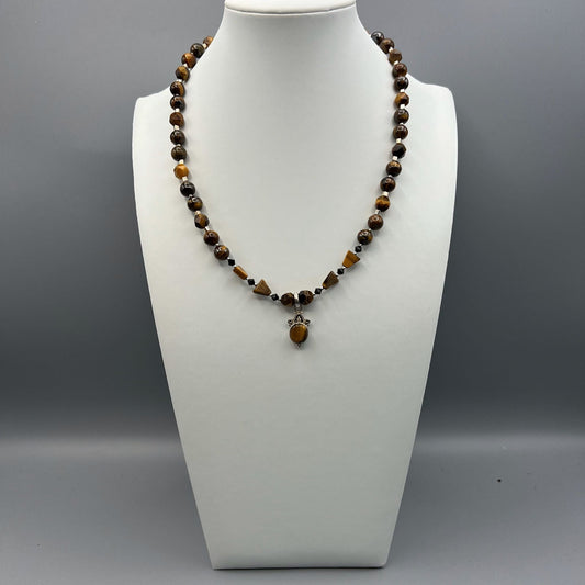 925 Silver Trendy Handcrafted Gold Brown Tiger Eye Single Strand Bead Necklace Set