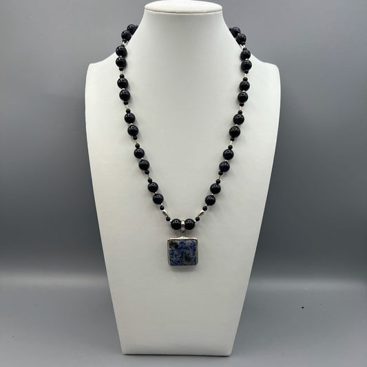 925 Silver Trendy Handcrafted Single Strand Blue Sand Stone, Sodalite Single Strand Bead Long Necklace Set