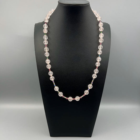 925 Silver Vintage Look Designer Trendy Handcrafted Rose Quartz Single Strand Bead Long Necklace Set