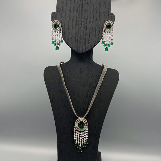 Fashion - Victorian Style Green AD/CZ Stone Pendant Set