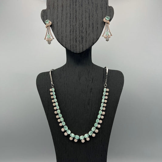Fashion - Victorian Inspired Mint Green AD/CZ Stone Necklace Set