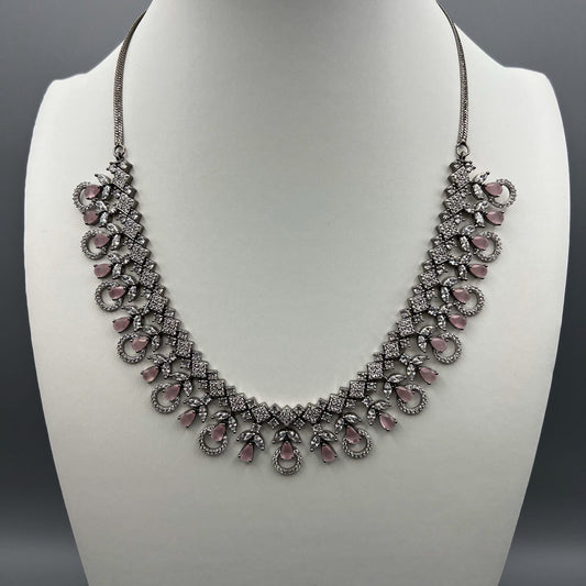 Fashion - Victorian Inspired Pink AD/CZ Stone Necklace Set