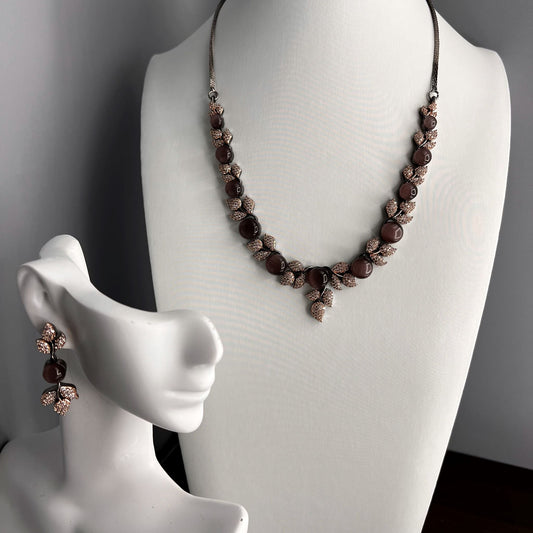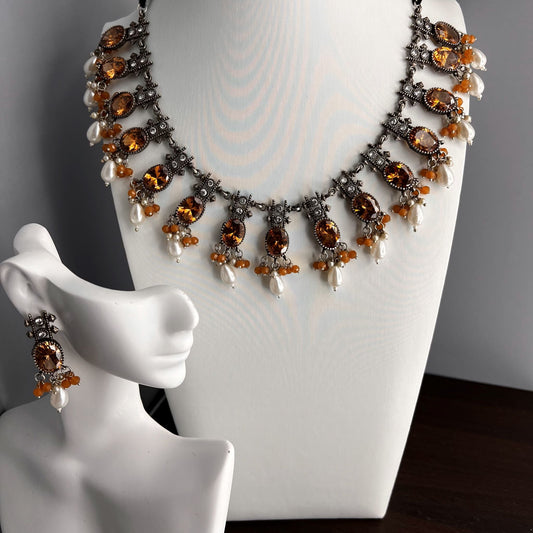 Fashion - Victorian Style Orange Dark Oxidized Necklace Set