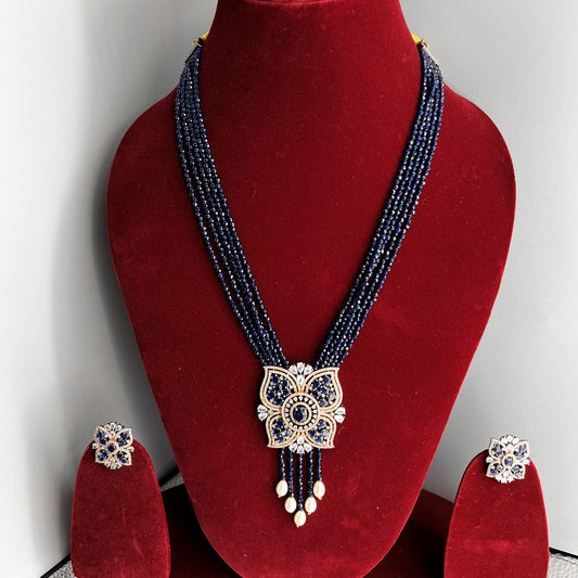 Fashion Premium - Victorian Inspired Navy Blue AD/CZ Stone, Bead Mix Mala Necklace Set