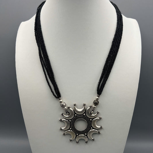 Fashion - Trendy Half Moon Design Black Bead Oxidized, Bead Mix Pendant Set