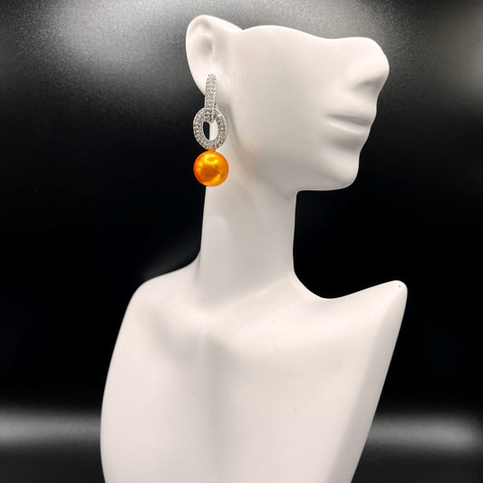 Fashion - Trendy Orange Color AD/CZ Dangler Earrings