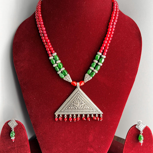 Fashion - Trendy Red & Green Beads Oxidized, Bead Mix Necklace Set