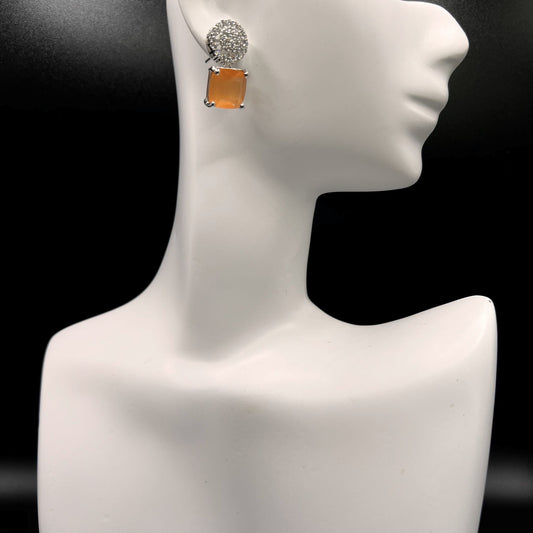 Fashion - Dainty Peach Color AD/CZ Stone Stud/Dangler Earrings
