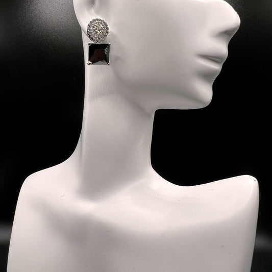 Fashion - Dainty Black Color AD/CZ Stone Stud/Dangler Earrings