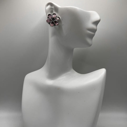 Fashion - Classic Pink Color Oxidized/Silver Tone Stud Earrings