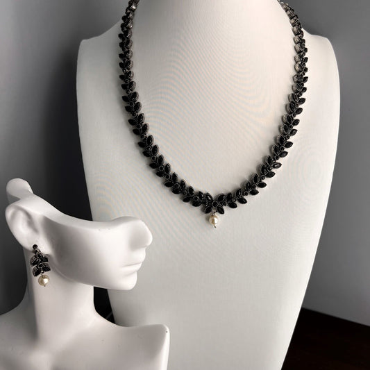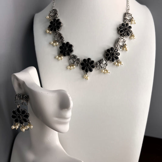 Fashion - Dainty Petal Design Black Oxidized Necklace Set