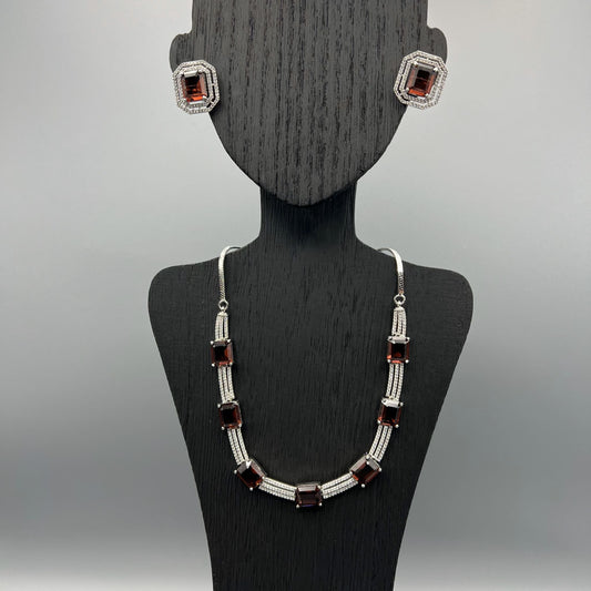 Fashion - Trendy Brown AD/CZ Stone Necklace Set