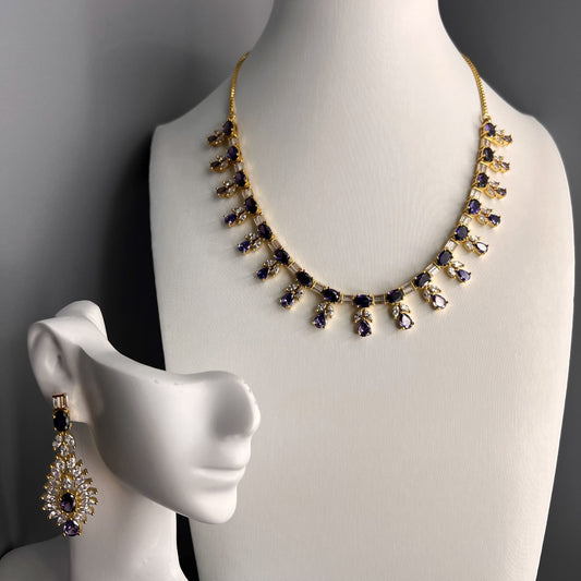 Fashion - Classic Purple & White AD/CZ Stone Necklace Set