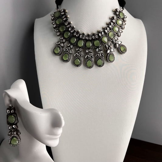 Fashion - Peacock Design Mint Green Oxidized Necklace Set